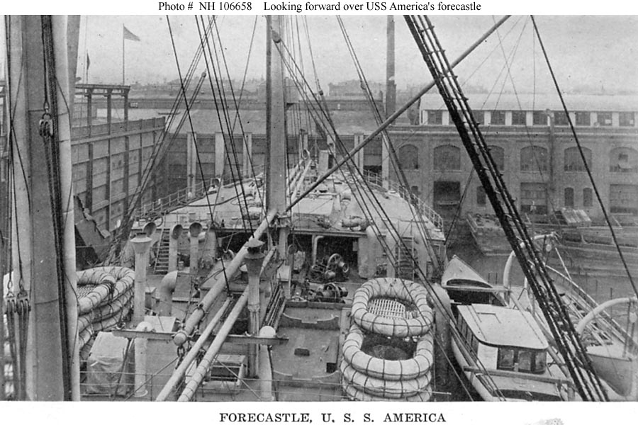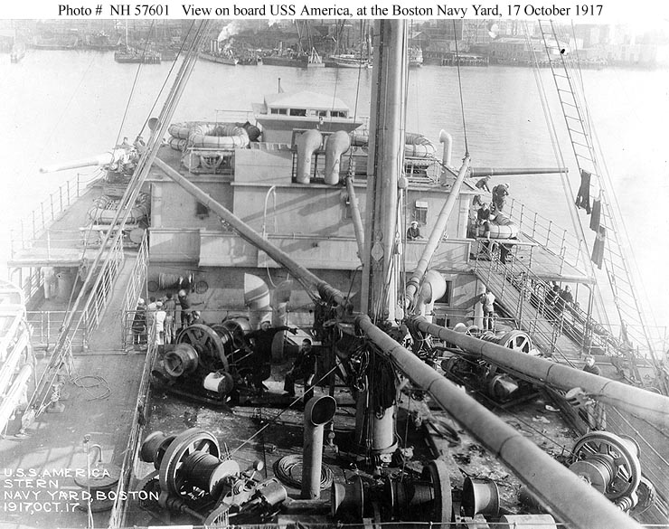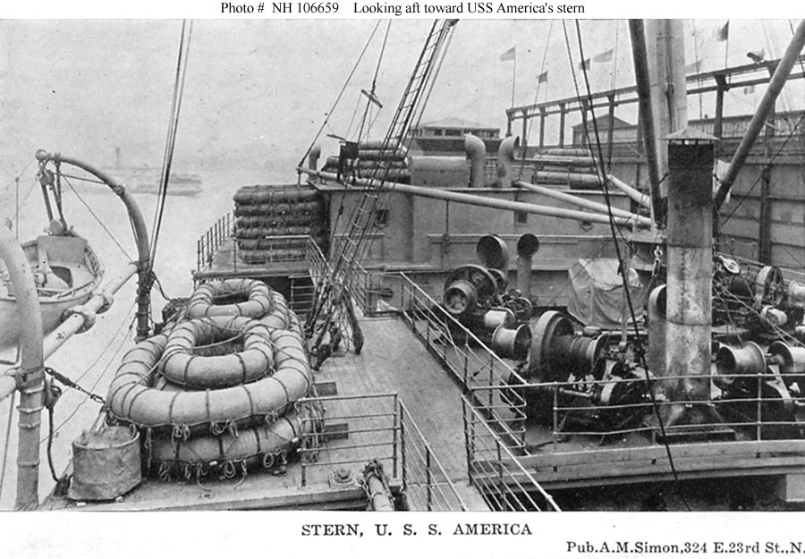 This view was published circa 1919 by A.M. Simon, 324 E. 23rd Street, New York City, as one of ten images in a "Souvenir Folder" concerning USS America.