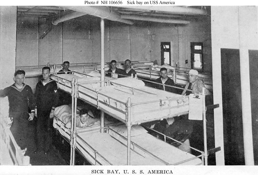 Halftone reproduction of a photograph of the ship's sick bay, circa 1919.
