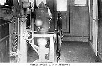 house showing her steering wheel and binnacle, circa 1918-1919.
