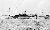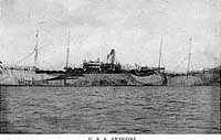 USS Antigone, a 17,024-ton transport, was built in Germany in 1900 as the German passenger liner Neckar. She was laid up at Baltimore, Maryland, after the outbreak of World War I made it generally impossible for German merchant vessels to operate at sea. Seized when the United States entered the War in April 1917, she was turned over to the Navy in July and converted to a transport. Renamed Antigone at the beginning of September 1917 and placed in commission a few days later, she completed outfitting at Norfolk, Virginia, and began active service in late November.