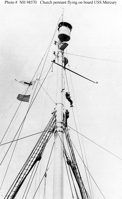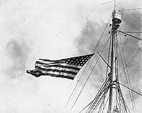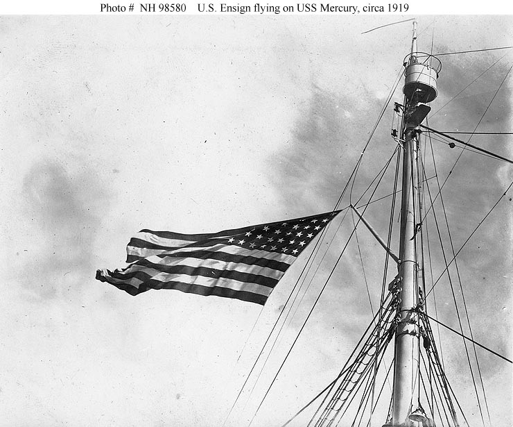 Note large U.S. Ensign flying from Mercury's mainmast,
