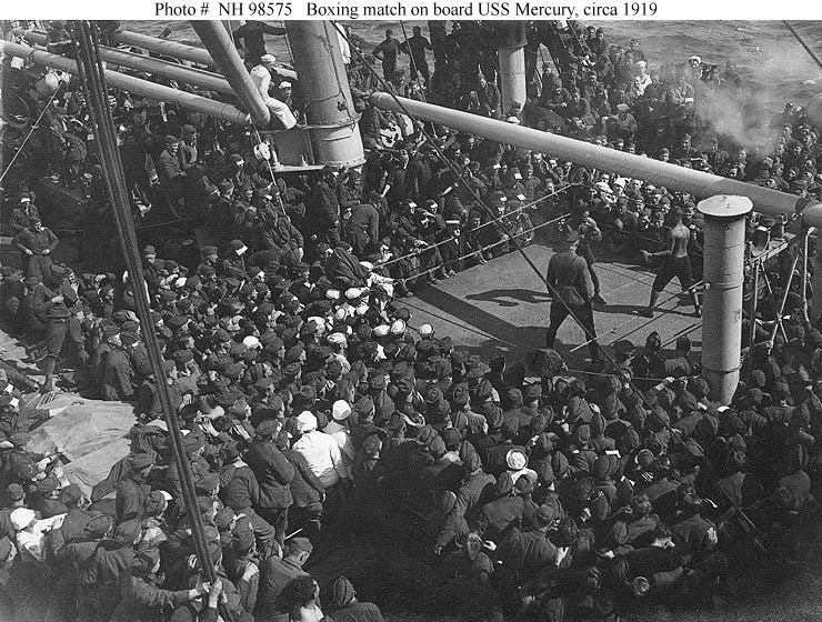 Boxing match on board, probably while the ship was bringing troops