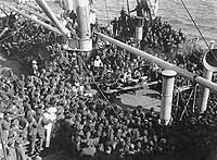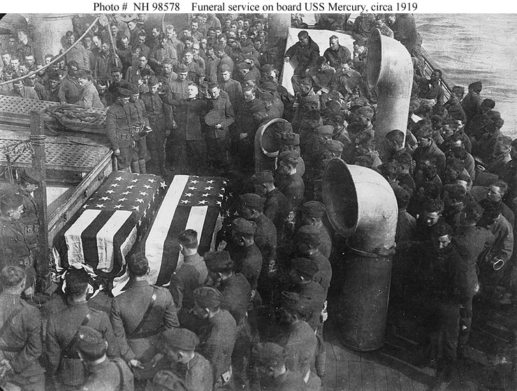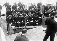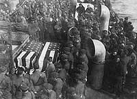 Funeral service on board the ship, probably while she was bringing