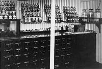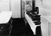 View in the ship's wheelhouse, showing binnacle, steering apparatus