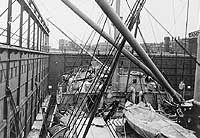 Six-inch gun mounted on the ship's deck, on a snowy day in 1917-1919.
