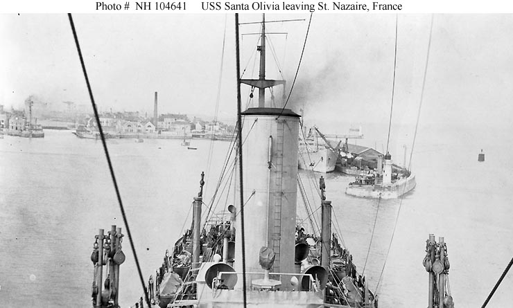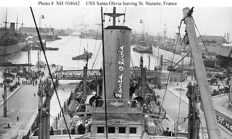 past the breakwater lighthouse at St. Nazaire, France in 1919.