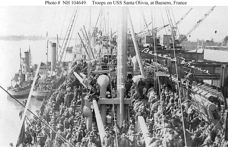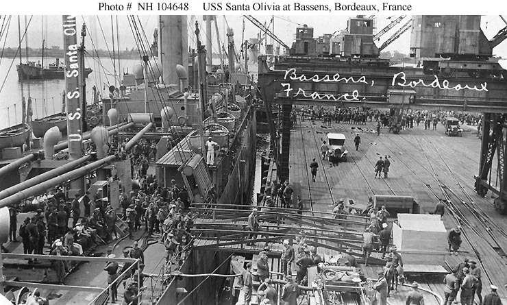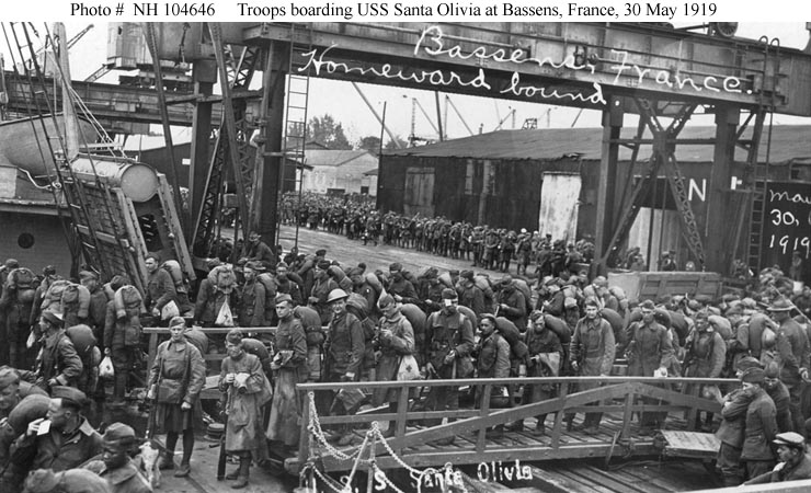 Embarking troops at St. Nazaire, France in 1919.