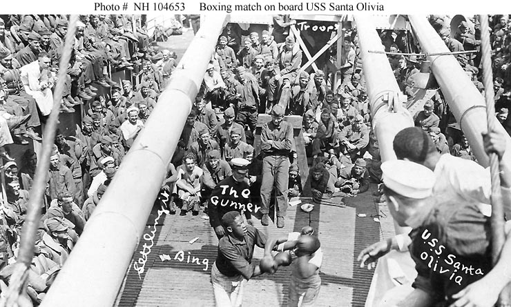 Boxing match on board, while the ship was en route from France