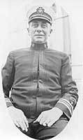 in May 1919. He is escorted off the ship by a bugler and two