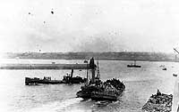 and Navy officers and men by the lifeboats at right.