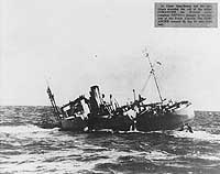 USS Rogday, a 2122 gross ton icebreaker, was built at Manitowoc, Wisconsin, in 1915 as the civilian freighter Nevada. Though sold to the Imperial Russian Government in March 1917 for icebreaking service and renamed Rogday, the Russian Revolution kept her from leaving the Western Hemisphere. In mid-November 1918, while she was at Sydney, Nova Scotia, the ship was transferred to the U.S. Navy and placed in commission. Rogday steamed to Boston, Massachusetts, in early December and remained at that port until June 1919 when she was sent to sea to assist USS West Grama (ID # 3794). After a brief voyage to Bermuda and back to Boston, she was decommissioned in mid-month. Rogday was turned over to the U.S. Shipping Board in September 1919 and promptly returned to Russian representatives.