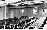 Photo #: NH 103325 USS Zeppelin (ID # 4042) Halftone reproduction of a photograph taken in 1919, showing the crew's mess hall. This image is one of ten photographs published in a "Souvenir Folder" of views concerning USS Zeppelin. Donation of Dr. Mark Kulikowski, 2005. U.S. Naval Historical Center Photograph. Online Image: 93KB; 740 x 495 pixels |