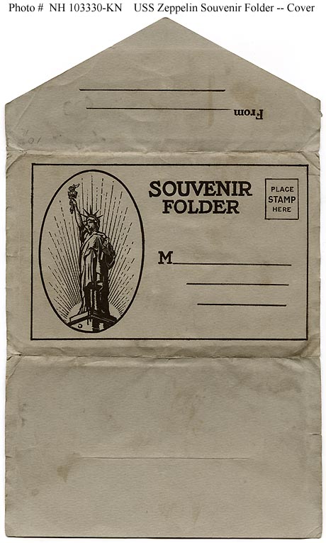 Photo #: NH 103330-KN (color) USS Zeppelin (ID # 4042) "Souvenir Folder" published in 1919, featuring ten halftone reproductions of photographs of and on board the ship. The individual photographs have Photo #s NH 103320, NH 103321, NH 103322, NH 103323, NH 103324, NH 103325, NH 103326, NH 103327, NH 103328, and NH 103329. Donation of Dr. Mark Kulikowski, 2005. U.S. Naval Historical Center Photograph. Online Image: 67KB; 460 x 765 pixels |
