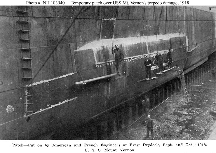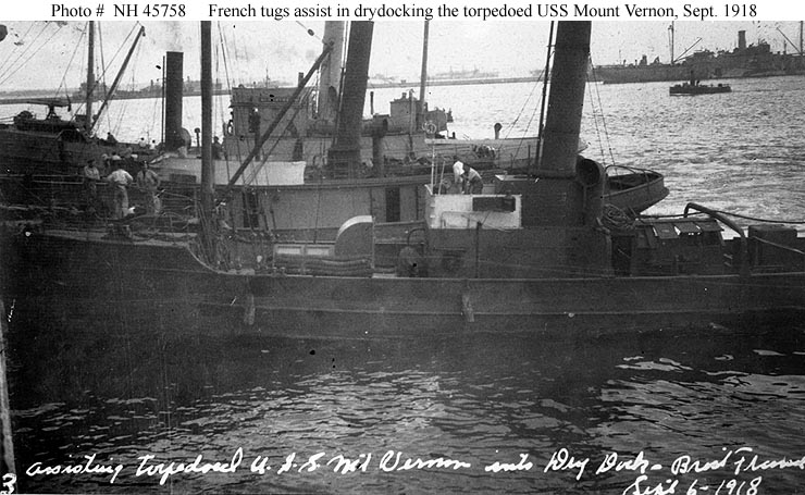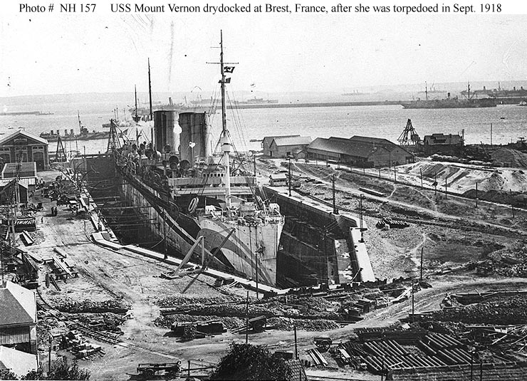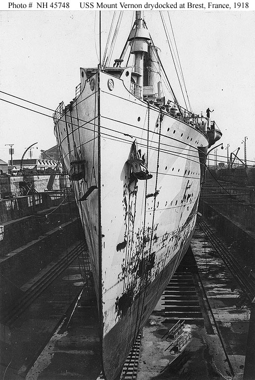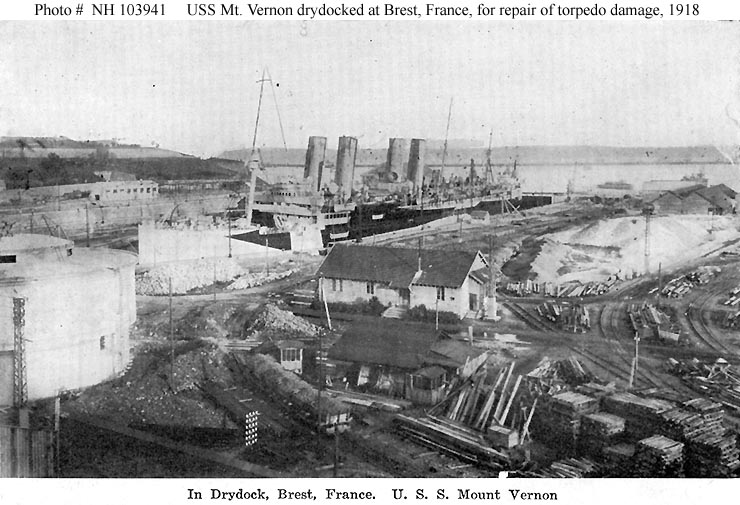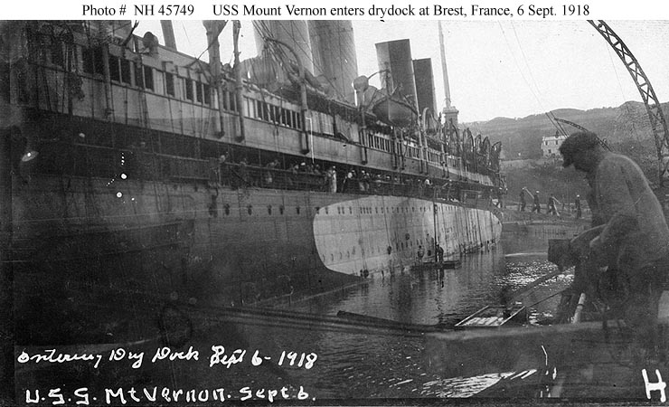 Entering drydock at Brest, France, on 6 September 1918. She had