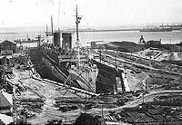 Halftone reproduction of a photograph taken in drydock at Brest,