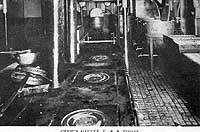 Photo #: NH 103305 USS Finland (ID # 4543) Halftone reproduction of a photograph taken circa 1918-1919, showing the crew's galley. This image is one of ten photographs published circa 1918-1919 in a "Souvenir Folder" of views concerning USS Finland. Donation of Dr. Mark Kulikowski, 2005. U.S. Naval Historical Center Photograph. Online Image: 99KB; 740 x 515 pixels |