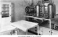Photo #: NH 103307 USS Finland (ID # 4543) Halftone reproduction of a photograph taken circa 1918-1919, showing the ship's medical operating room. This image is one of ten photographs published circa 1918-1919 in a "Souvenir Folder" of views concerning USS Finland. Donation of Dr. Mark Kulikowski, 2005. U.S. Naval Historical Center Photograph. Online Image: 86KB; 740 x 505 pixels |