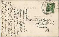 Photo #: NH 105901-A-KN (color) SMS Kronprinz Wilhelm (German Auxiliary Cruiser, formerly Passenger Liner, 1901) Reverse side of a post card, featuring a message postmarked on USS Wyoming (Battleship # 32), 30 May (1915 ?). See Photo # NH 105901 for a view of the card's front side, featuring a photograph of Kronprinz Wilhelm interned at Norfolk, Virginia, circa April 1915. Donation of Charles R. Haberlein Jr., 2008. U.S. Naval History and Heritage Command Photograph. Online Image: 83KB; 740 x 465 pixels |