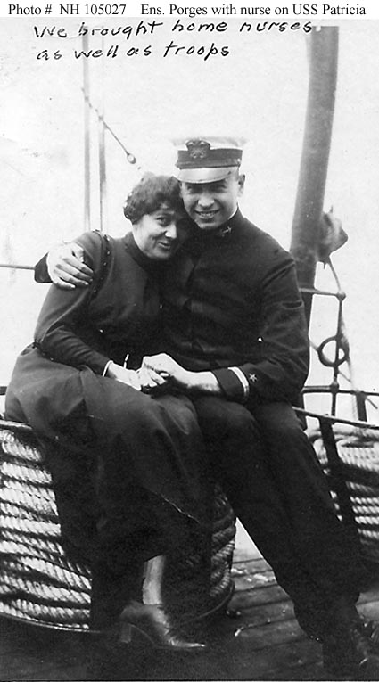 Poses with a nurse on board USS Patricia, circa May-June