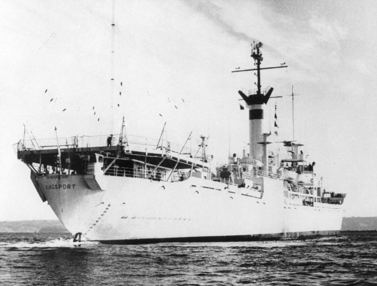 USNS Kingsport Victory, previously an Army ship, served throughout the 1950s as a standard MSTS cargo ship. This photo was forwarded by MSTS LANT to MSTS headquarters on 15 September 1953.