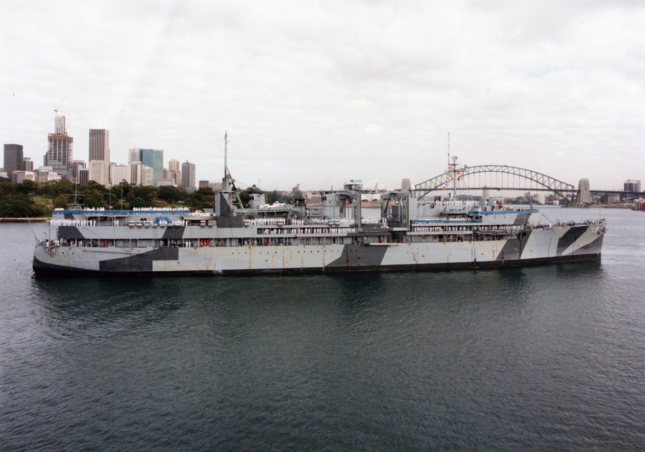 Arriving at Sydney, Australia, in early May 1992 to participate in a celebration of the 50th anniversary of the Battle of the Coral Sea. Because the "Old Pro" saw service in WWII, Commander 7th Fleet selected her to participate and authorized her to be painted to her WWII camouflage specification. She was inactivated at Guam two months later.
