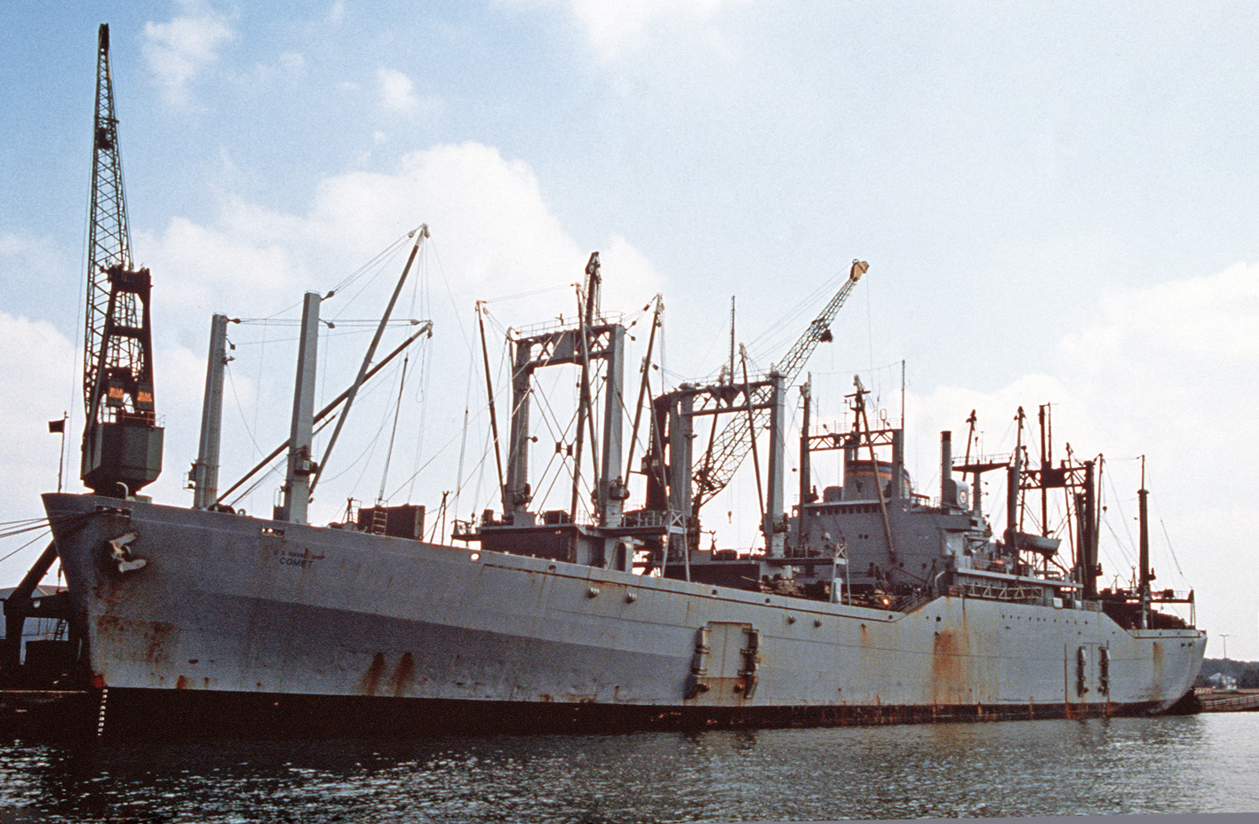 At a pier in Ghent, Belgium, on 24 August 1990 during Operation Reforger. She still displays the MSC insignia, which by then had been deleted from the stacks of most MSC ships.