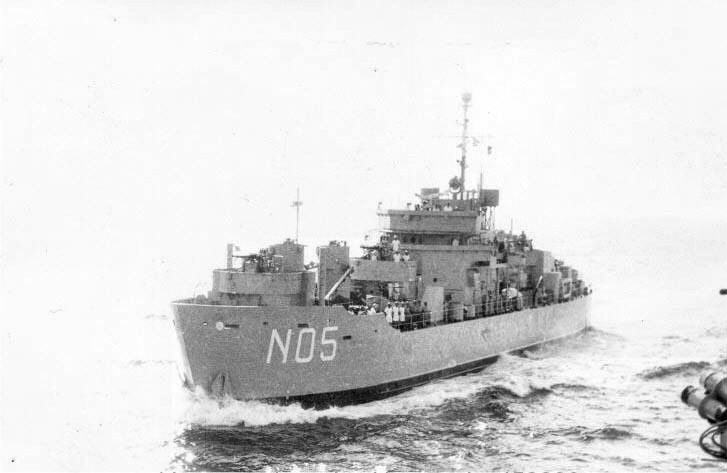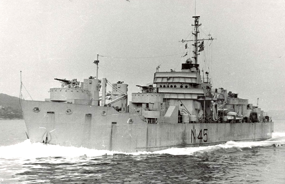 Underway wearing her NATO pennant number circa 1958 in an official R.Nor.N. photo, location unknown.