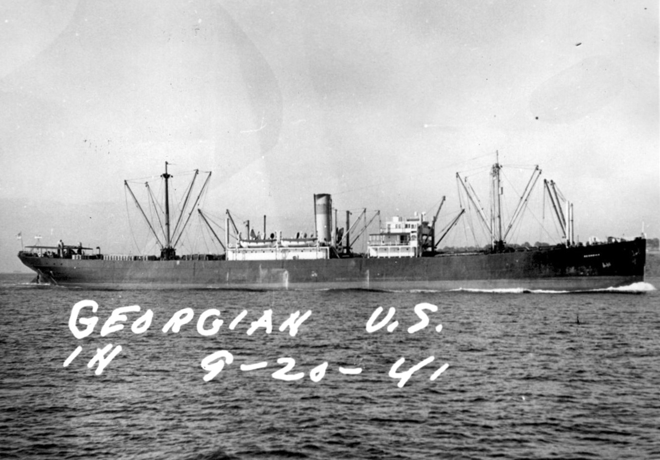 In merchant service as a cargo ship with neutrality markings circa 1939-1940. The print is backstamped "Palmer Pictures, 90 West Street, New York City."