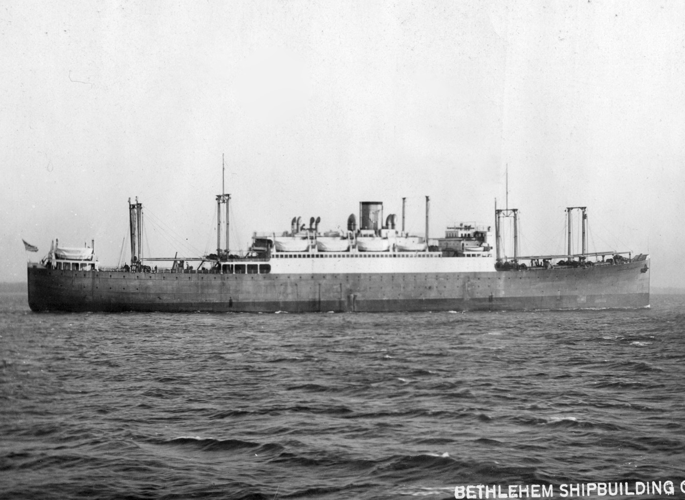 | S.S. Hawkeye State (Design 1029, EFC Hull 1012) photographed by her builder, the Bethlehem Shipbuilding Corp., Ltd., Sparrows Point, MD, on 18 December 1920. Her funnel marking is the Shipping Board shield. (NARA: RG-32-UB) (Click photo to enlarge) |