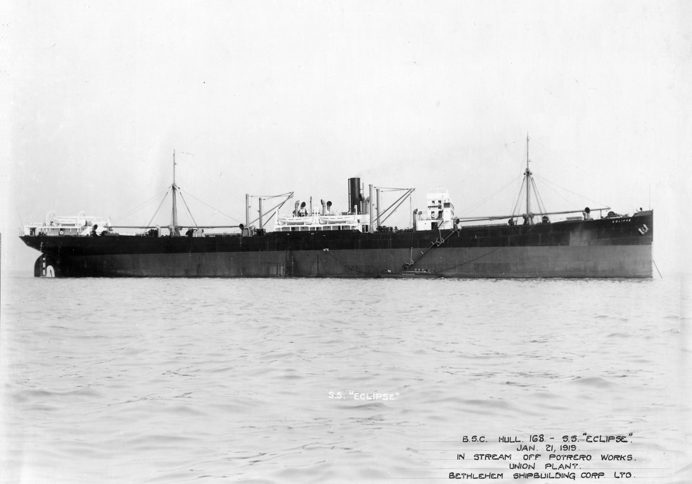 | S.S. Hannawa (Design 1032, EFC Hull 1684) on trials on 3 November 1920. She was built after the war and has a standard peacetime rig. (NARA: RG-32-S) (Click photo to enlarge) |