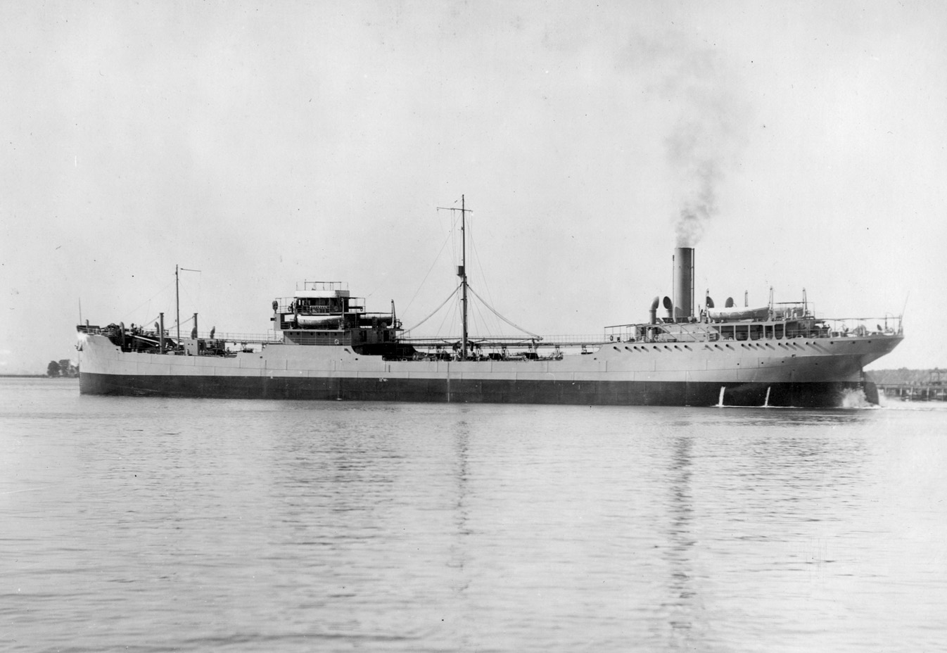 Notes: EFC Designs 1045 through 1047 were designs already in use by three Bethlehem Shipbuilding Corp. facilities, 1047 (a tanker) at the former Union Iron Works yards at San Francisco and Alameda, Calif., 1046 (a freighter) at the Sparrows Point, Md., yard, and 1045 (a tanker) at the former Fore River Shipbuilding Co. at Quincy, Mass. Beginning in 1915 Bethlehem built in the San Francisco yard a series of tankers closely resembling Design 1047: Olinda, La Brea, Los Angeles, Acme, H.C. Folger, J.W. VanDyke, Paulsboro, and George G. Henry, followed at both San Francisco and Alameda by the eight requisitioned ships identified below. The EFC then ordered a total of 18 ships: EFC Hulls 1127-1138 on 31 December 1917 and EFC Hulls 1676-1681 on 30 April 1918. Bethlehem also ordered ten Design 1047 ships at its Sparrows Point, Md., yard: EFC Hulls 1145-1147 on 31 December 1917, EFC Hulls 1551-1554 on 18 March 1918, and EFC Hulls 1673-1675 on 30 April 1918. The EFC also issued Contract 416 on 10 July 1918 with the Southwestern Shipbuilding Co. of San Pedro, Calif., for six Design 1047 tankers (either EFC Hulls 2210-2215 or 2206-2211), but although Bethlehem offered to the EFC to provide the plans free of charge the contract was not executed and the order was changed in September 1918 to Design 1019 freighters. After the war the Bethlehem yards continued to produce tankers of this type: William H. Doheny at San Francisco, Franklin K. Lane, Crampton Anderson, Algonquin, W.S. Miller, Yorba Linda, and Frank G. Drum at Alameda, and Argon, Ario, Rochester, and Aladdin at Sparrows Point. Requisitioned Sisters: During 1916-1917 American interests placed orders for eight tankers with the Bethlehem Shipbuilding Corp. (formerly the Union Iron Works) yard at Alameda, Calif., to a design that later became EFC Design 1047. These ships, Yard nos. 140 and 143-149 Wilhelm Jebsen, J.E. O'Neil, Herbert L. Pratt, S.M. Spalding, Paul H. Harwood, W.S. Rheem, W.M. Irish, and W.M. Burton), were requisitioned by the Shipping Board on 3 August 1917 and soon reconveyed to their owners. They are covered in the Requisitioned Ships portion of the McKellar list. Specifications: Design 1047 (S.S. Derbyline, EFC Hull 1127): Steel Tanker. Deadweight tons: 10100 designed, 10100 actual. Dimensions: 435' length pp x 56' beam mld. x 33.5' depth mld., 25.9' draft loaded. Propulsion: 1 screw, 1 triple expansion engine, 3 Scotch boilers, 2800 IHP, 11 kts. [See IME 4.19 p.196] |