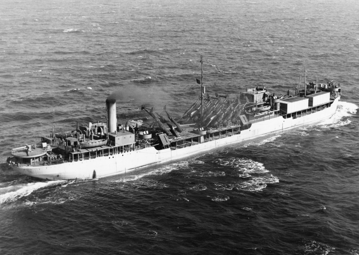 | S.S. Hulaco (Design 1047, EFC Hull 1553) photographed on 26 September 1919 upon completion by the Bethlehem S.B. Corp., Sparrows Point, Md. The Sparrows Point Design 1047 ships had a light mast forward flanked by two short derrick posts, as in the Design 1045 ships built by Bethlehem, Quincy. (NARA: RG-32-UB) (Click photo to enlarge) |