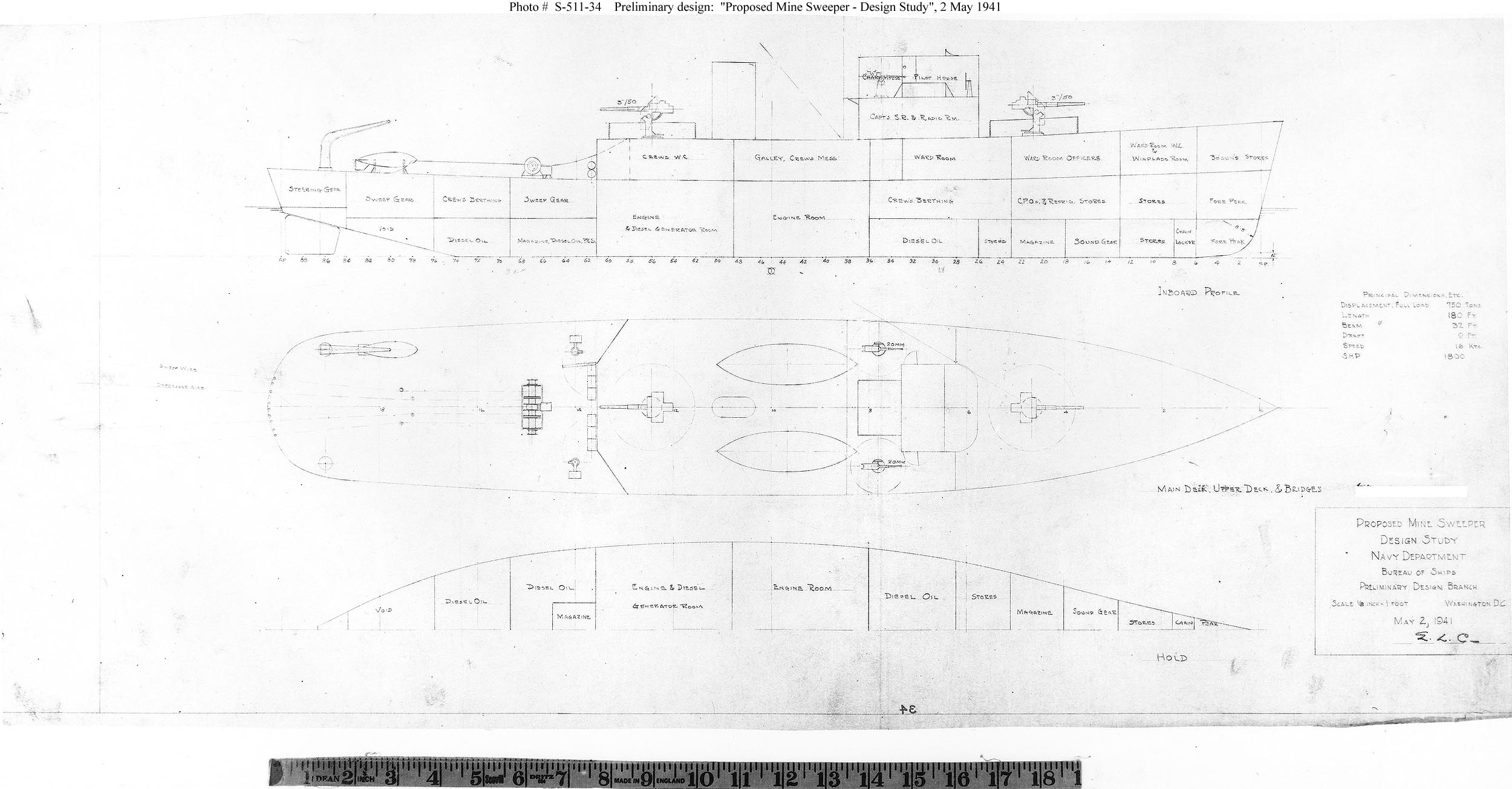 This drawing, dated 2 May 1941, is for a 750-ton (full load displacement)