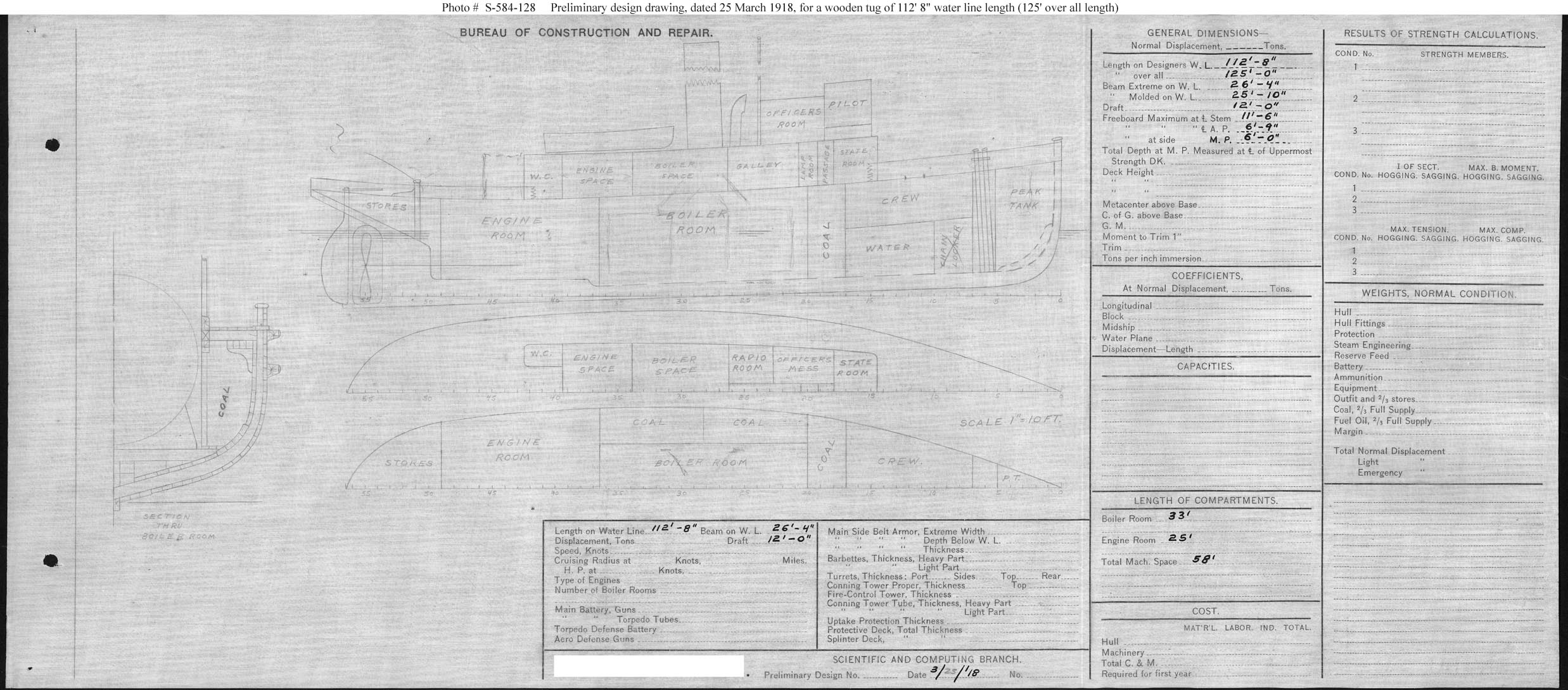 Untitled Plan for a Seagoing Tug ... March 25, 1918