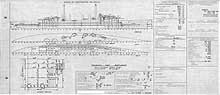 Photo #: S-584-134 Preliminary Design for a Fast Battleships ... May 16, 1918 Preliminary design plan for a fast battleship. One of a series of preliminary designs prepared in response to Chief Constructor David Taylor's direction to his design staff on 9 April 1918 to prepare designs that merged battleship and battle cruiser qualities into a single new ship type. This particular drawing -- designated "Scheme C" -- was laid out by Navy civilian naval architect James L. Bates. "Scheme C" eliminated side armor at the Second Deck level, compared to "Scheme D" (see Photo # S-584-133), in order to permit greater length for slightly higher speed at the same displacement. This plan provided twelve 16-inch guns, electric drive machinery, and a speed of 30 knots in a ship 900 feet long on the waterline, 106 feet in beam, and with a normal displacement of 54,500 tons. Note: The original document was ink on linen (black on white). The original plan is in the 1911-1925 "Spring Styles Book". U.S. Naval Historical Center Photograph. Online Image: 485KB; 2475 x 1090 pixels |