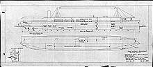 Preliminary design plan for an aircraft carrier. This drawing