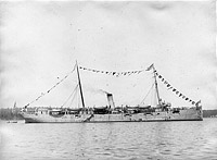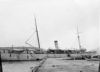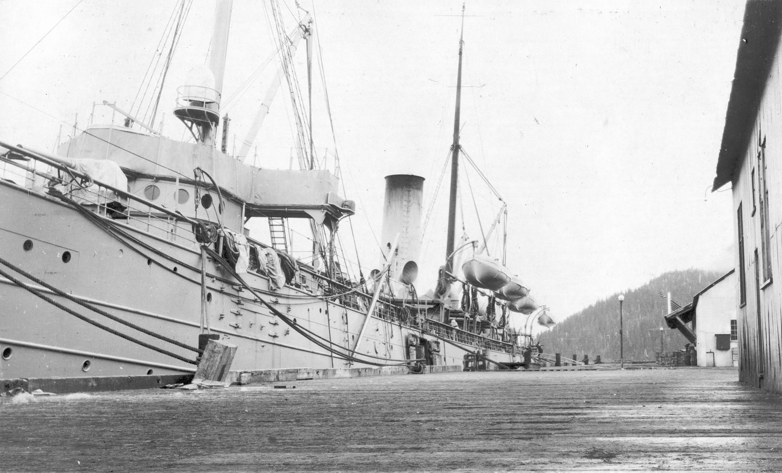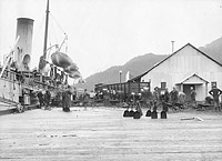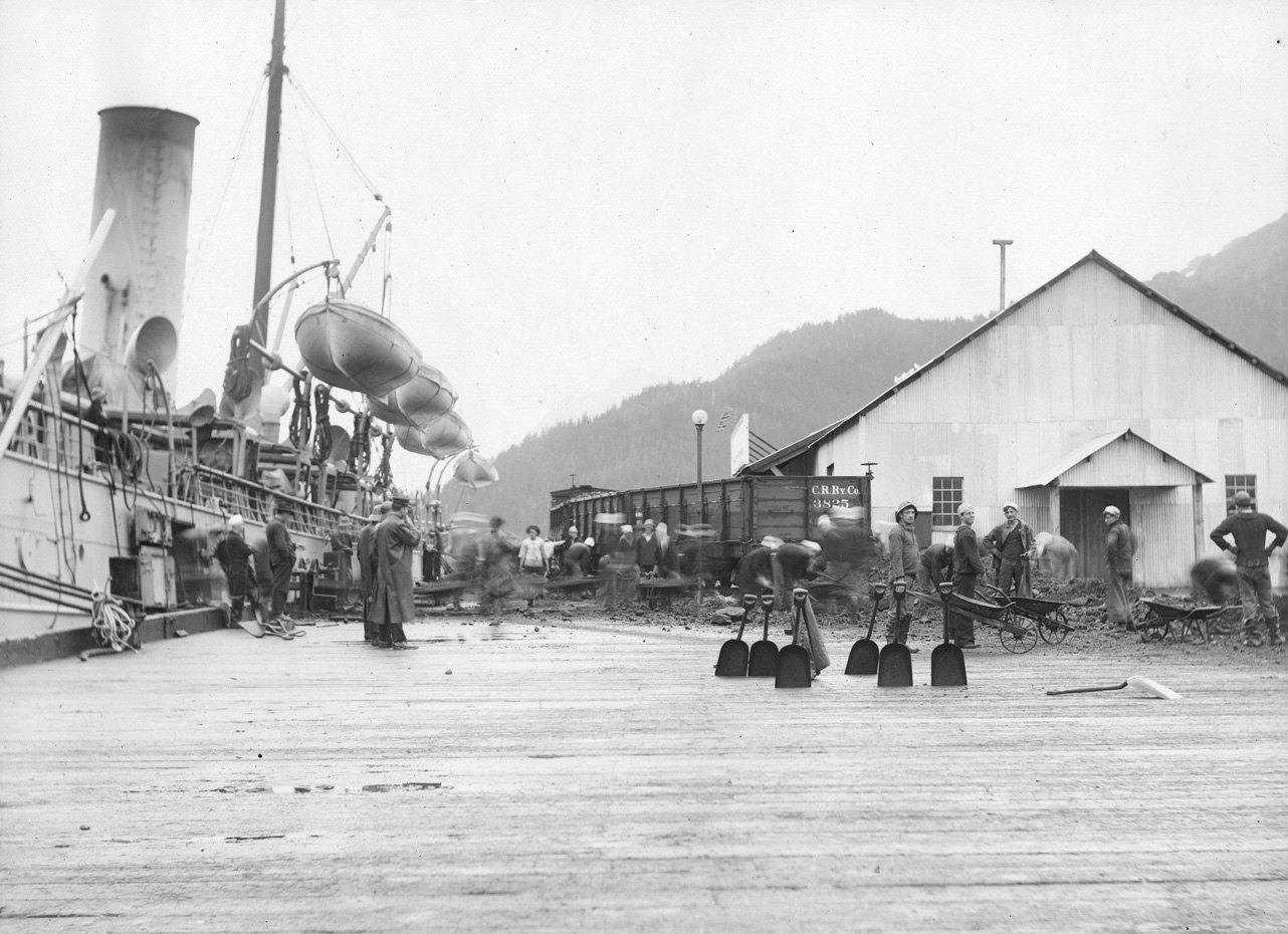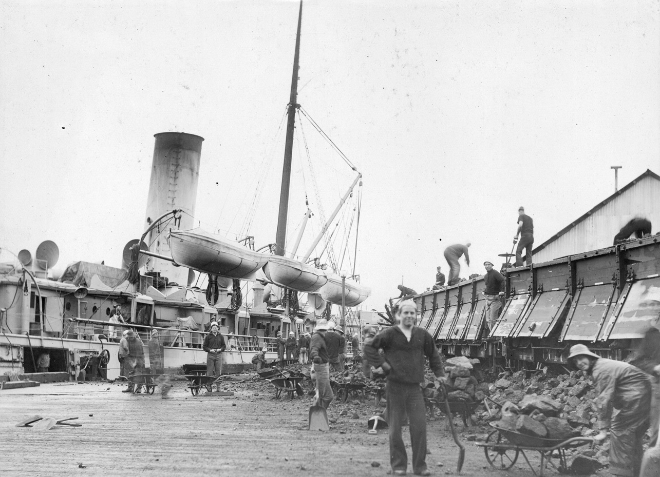 Coaling ship at Cordova, Alaska, between late July and mid-September 1914 during the 1914 Alaskan Radio Expedition.