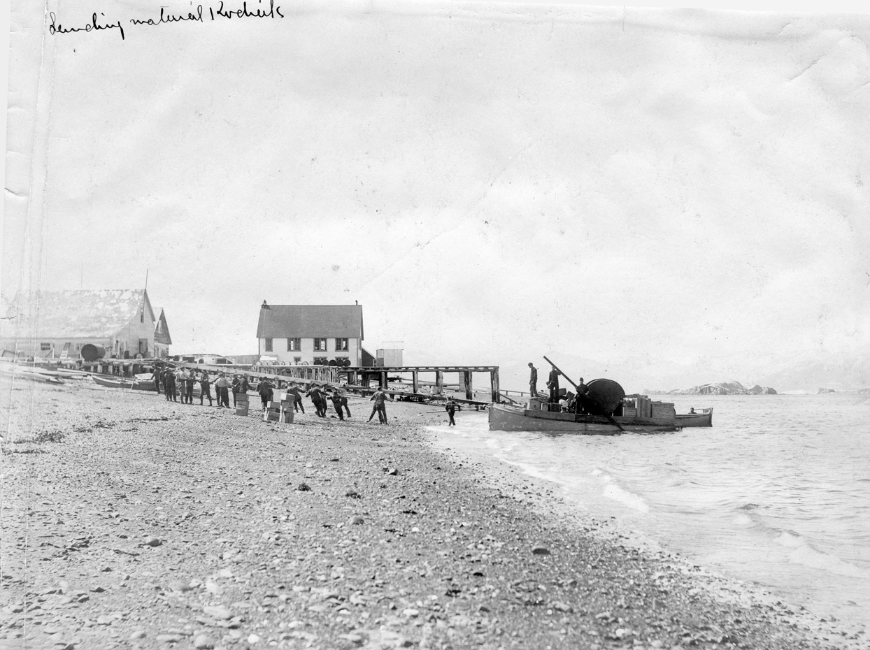 At the Unalaska coal dock in late June 1914 during the 1914 Alaskan Radio Expedition.