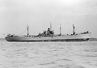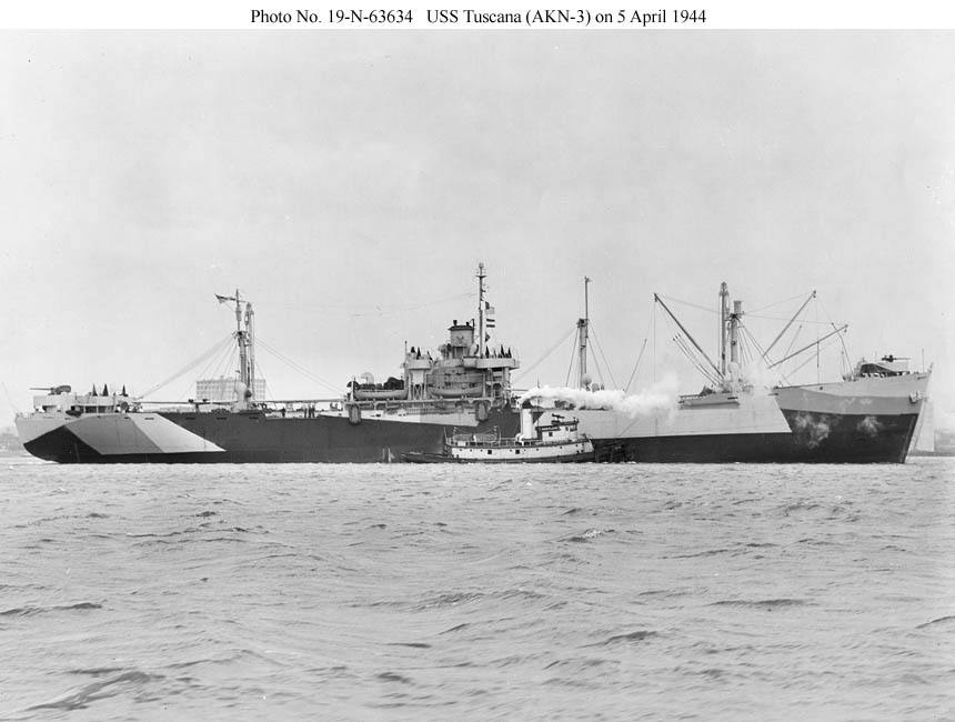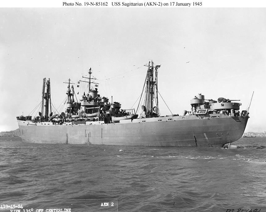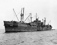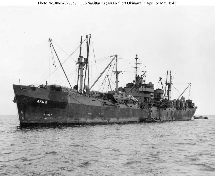 Preparing to lower a Sea Mule over the side in April or May 1945 during the invasion of Okinawa.