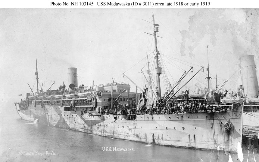 Photographed by Holladay of Newport News, Virginia, in port with much of her crew on deck circa late 1918 or early 1919.