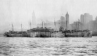 Photographed by E. Muller Jr., of New York in New York Harbor in 1919 showing her original configuration with six masts and a large break between the navigating bridge and the rest of the amidships superstructure.