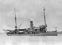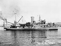 Her mainmast is missing and the single 3"/50 gun that she briefly carried in 1921-1922 is visible on the starboard side of her forecastle. She was sunk by a screw propeller of the collier Orion at Pensacola on 5 July 1922 but was raised later in the month and remained at Pensacola until 1932, when she moved to Philadelphia.