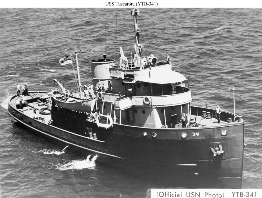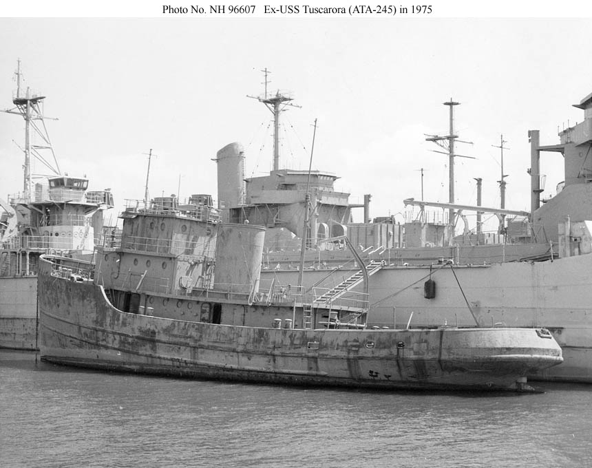 Although she is now a service craft, her motor whaleboat still bears her original designation of AT-77.
