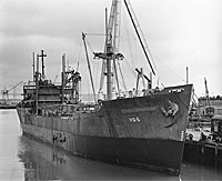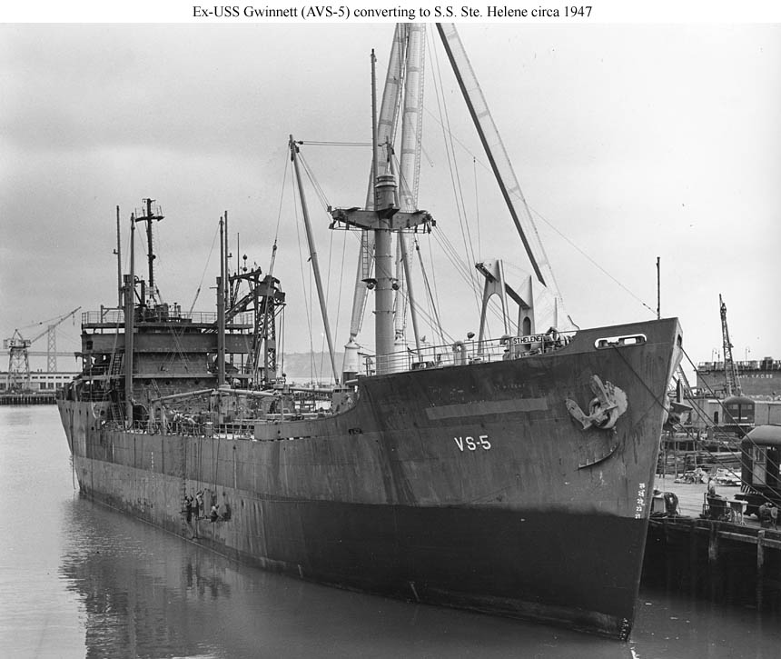 In the initial stages of conversion to the French merchant ship Ste. Helene circa September 1947.