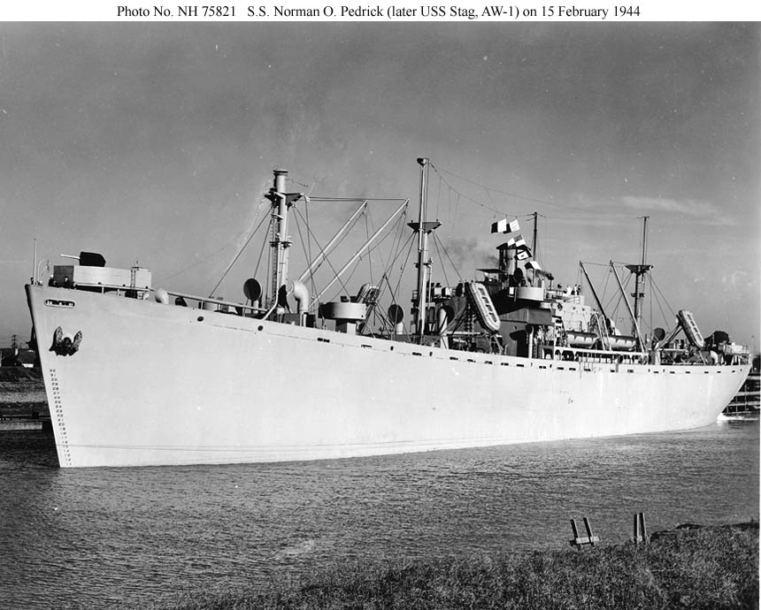 This Liberty tanker was handed over to the Navy the next day for conversion to USS Stag (AW-1).