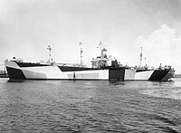Departing her builder's yard at New Orleans, Louisiana, as a merchant ship on 15 February 1944.