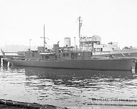 Photographed by D. N. Kelley & Sons, Inc., of New Bedford on 19 October 1942 a day before she completed fitting out at this yard with special mine warfare devices.