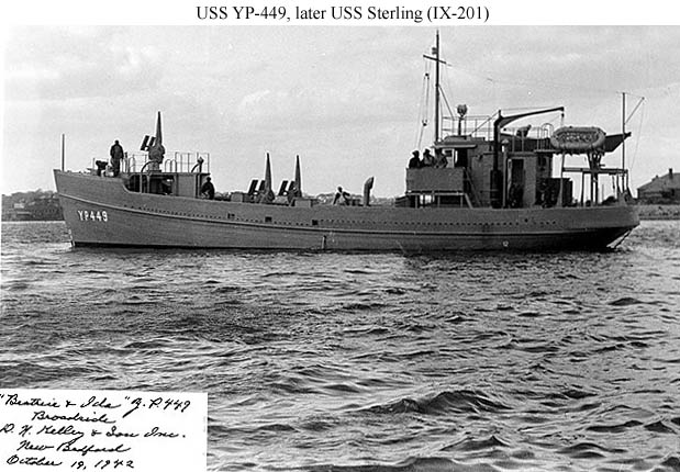 She became USS Sterling (IX-201) in December 1944. Her merchant name was Beatrice & Ida.