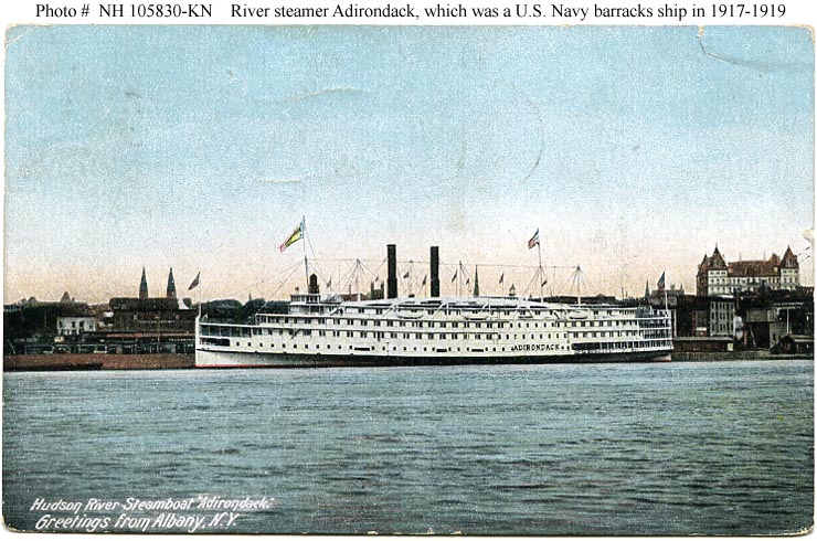 This page features all available views concerning the river passenger steamer Adirondack, which was USS Adirondack (ID # 1270) in 1917-19.