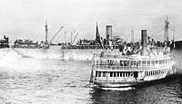 The harbor passenger steamer Ursula is in the foreground.